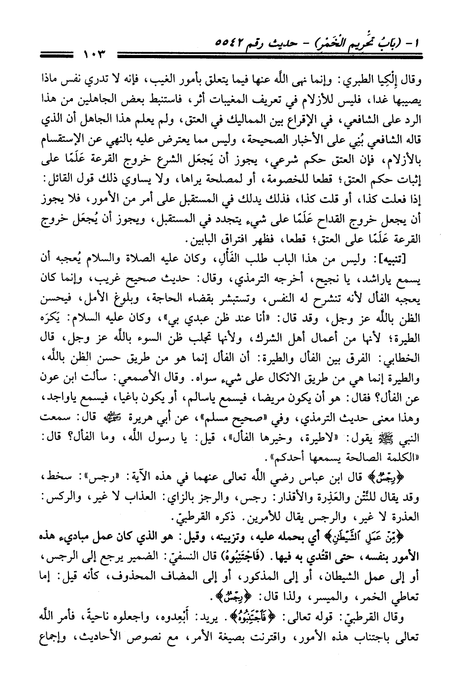وَقَالَ القرطبيّ: قوله تعالى: {فَاجْتَنِبُوُه}. يريد: أَبْعِدوه، واجعلوه ناحيةً، فأمر الله تعالى باجتناب هذه الأمور، واقترنت بصيغة الأمر، مع نصوص الأحاديث، وإجماع