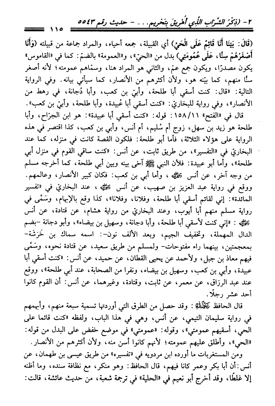 قَالَ الحافظ رحمه الله: وَقَدْ حصل منْ الطرق التي أوردتها تسمية سبعة منهم، وأبهمهم فِي رواية سليمان التيمي، عن أنس، وهي فِي هَذَا الباب، ولفظه "كنت قائماً عَلَى الحي، أسقيهم عمومتي"، وقوله: "عمومتي" فِي موضع خفض عَلَى البدل منْ قوله: "الحي"، وأطلق عليهم عمومته؛ لأنهم كانوا أسن منه، ولأن أكثرهم منْ الأنصار.