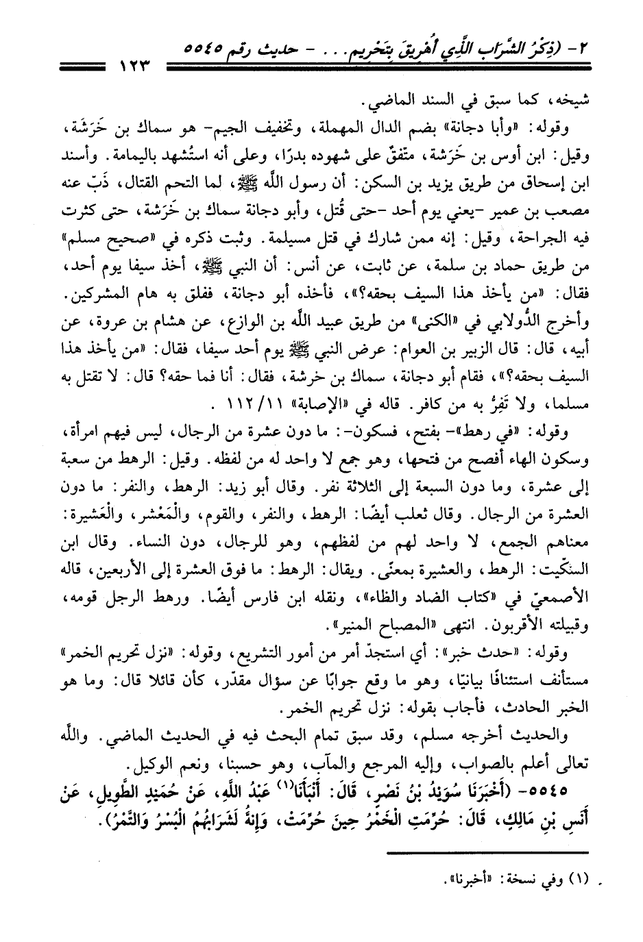 5545 - (أَخْبَرَنَا سُوَيْدُ بْنُ نَصْرٍ، قَالَ: أَنْبَأَنَا (¬1) عَبْدُ اللَّهِ، عَنْ حُمَيْدٍ الطَّوِيلِ، عَنْ أَنَسِ بْنِ مَالِكٍ، قَالَ: حُرِّمَتِ الْخَمْرُ حِينَ حُرِّمَتْ، وَإِنَّهُ لَشَرَابُهُمُ الْبُسْرُ وَالتَّمْرُ).