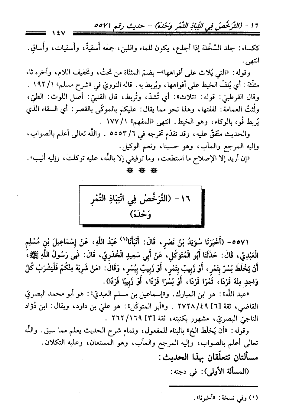 16 - (التَّرَخُّصِ فِي انْتِبَاذِ التَّمْرِ وَحْدَهُ)