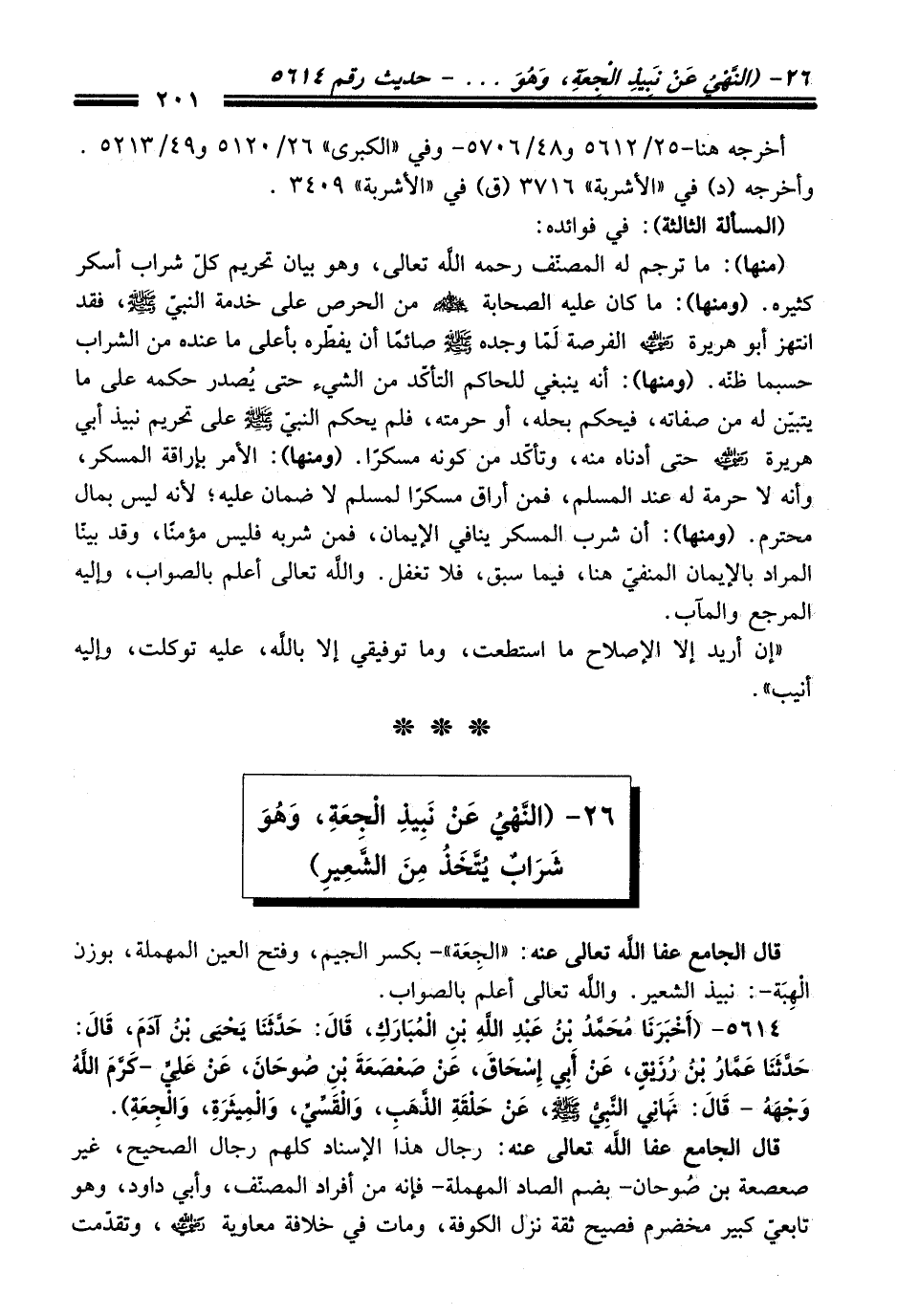 26 - (النَّهْيُ عَنْ نَبِيذِ الْجِعَةِ، وَهُوَ شَرَابٌ يُتَّخَذ مِنَ الشَّعِيرِ)