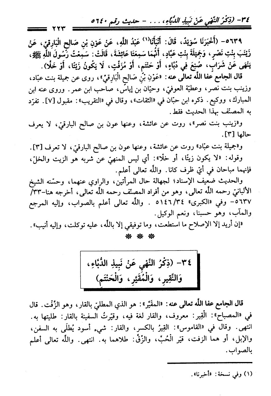 34 - (ذِكْرُ النَّهْي عَنْ نَبِيذِ الدُّبَّاءِ، وَالنَّقِيرِ، وَالْمُقَيَّرِ، وَالْحَنْتَمِ)