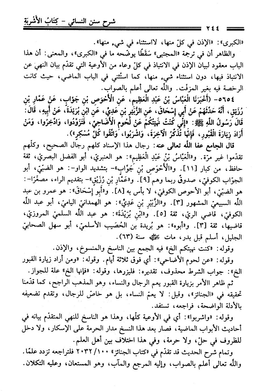 5654 - (أَخْبَرَنَا الْعَبَّاسُ بْنُ عَبْدِ الْعَظِيمِ، عَنِ الأَحْوَصِ بْنِ جَوَّابٍ، عَنْ عَمَّارِ بْنِ رُزَيْقٍ، أَنَّهُ حَدَّثَهُمْ عَنْ أَبِي إِسْحَاقَ، عَنِ الزُّبَيْرِ بْنِ عَدِيٍّ، عَنِ ابْنِ بُرَيْدَةَ، عَنْ أَبِيهِ، قَالَ: قَالَ رَسُولُ اللَّهِ -صلى الله عليه وسلم-: "إِنِّي كُنْتُ نَهَيْتُكُمْ عَنْ لُحُومِ الأَضَاحِيِّ، فَتَزَوَّدُوا، وَادَّخِرُوا، وَمَنْ أَرَادَ زِيَارَةَ الْقُبُورِ، فَإِنَّهَا تُذَكِّرُ الآخِرَةَ، وَاشْرَبُوا، وَاتَّقُوا كُلَّ مُسْكِرٍ").