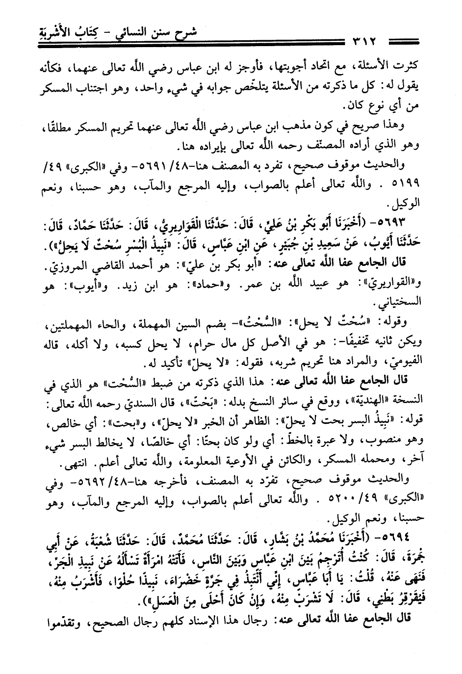 5693 - (أَخْبَرَنَا أَبُو بَكْرِ بْنُ عَلِيٍّ، قَالَ: حَدَّثَنَا الْقَوَارِيرِيُّ، قَالَ: حَدَّثَنَا حَمَّادٌ، قَالَ: حَدَّثَنَا أَيُّوبُ، عَنْ سَعِيدِ بْنِ جُبَيْرٍ، عَنِ ابْنِ عَبَّاسٍ، قَالَ: "نَبِيذُ الْبُسْرِ بَحْتًا لاَ يَحِلُّ").