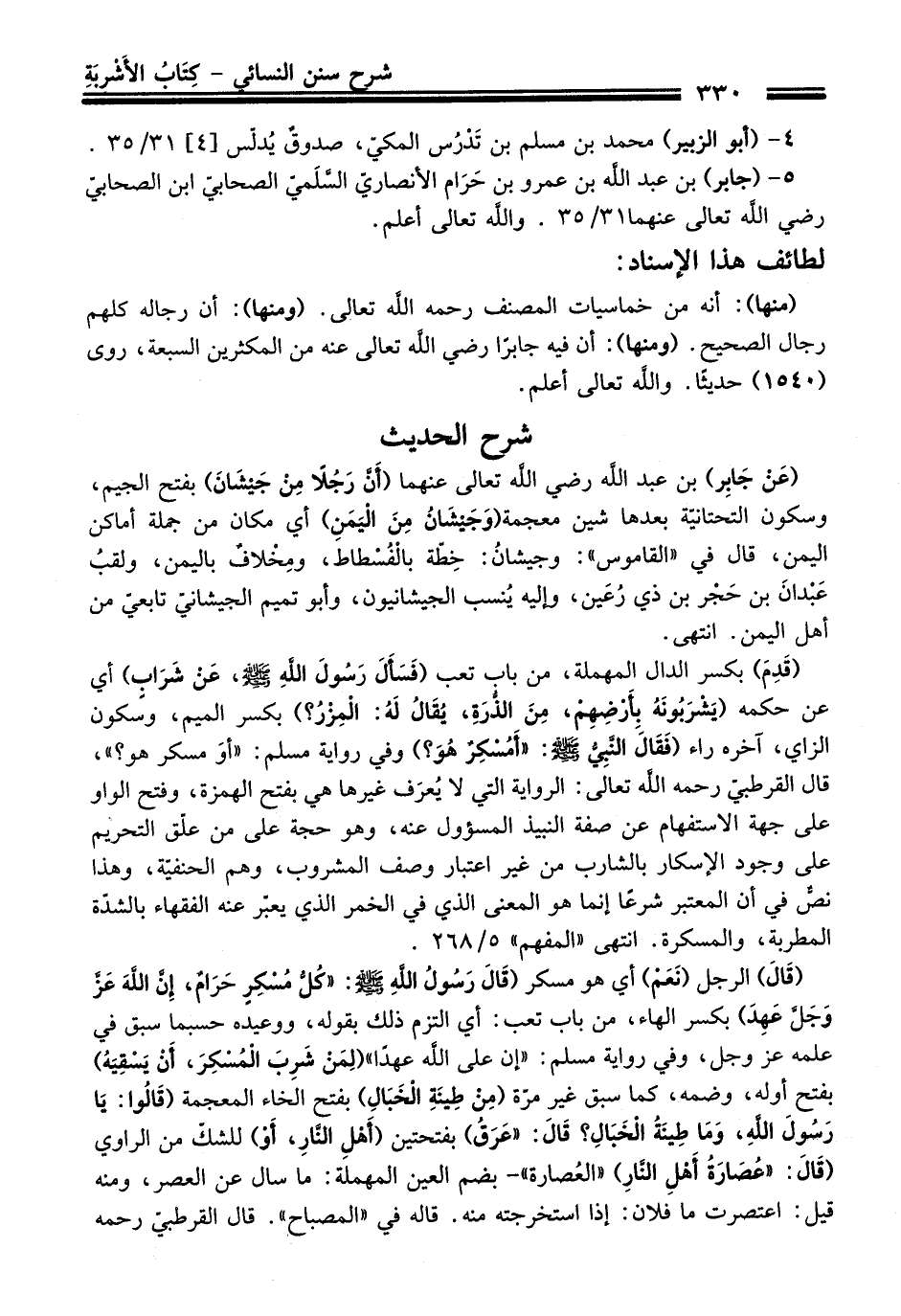 (قَدِمَ) بكسر الدال المهملة، منْ باب تعب (فَسَأَلَ رَسُولَ اللهِ -صلى الله عليه وسلم-، عَنْ شَرَابٍ) أي عن حكمه (يَشْرَبُونَهُ بِأَرْضِهِمْ، مِنَ الذُّرَةِ، يُقَالُ لَهُ: الْمِزْرُ؟) بكسر الميم، وسكون الزاي، آخره راء (فَقَالَ النَّبِيُّ -صلى الله عليه وسلم-:"أَمُسْكِرٌ هُوَ؟) وفي رواية مسلم: "أوَ مسكر هو؟ "، قَالَ القرطبيّ رحمه الله تعالى: الرواية التي لا يُعرَف غيرها هي بفتح الهمزة، وفتح الواو عَلَى جهة الاستفهام عن صفة النبيذ المسؤول عنه، وهو حجة عَلَى منْ علّق التحريم عَلَى وجود الإسكار بالشارب منْ غير اعتبار وصف المشروب، وهم الحنفيّة، وهذا نصٌّ فِي أن المعتبر شرعًا إنما هو المعنى الذي فِي الخمر الذي يعبّر عنه الفقهاء بالشدّة المطربة، والمسكرة. انتهى "المفهم" 5/ 268.