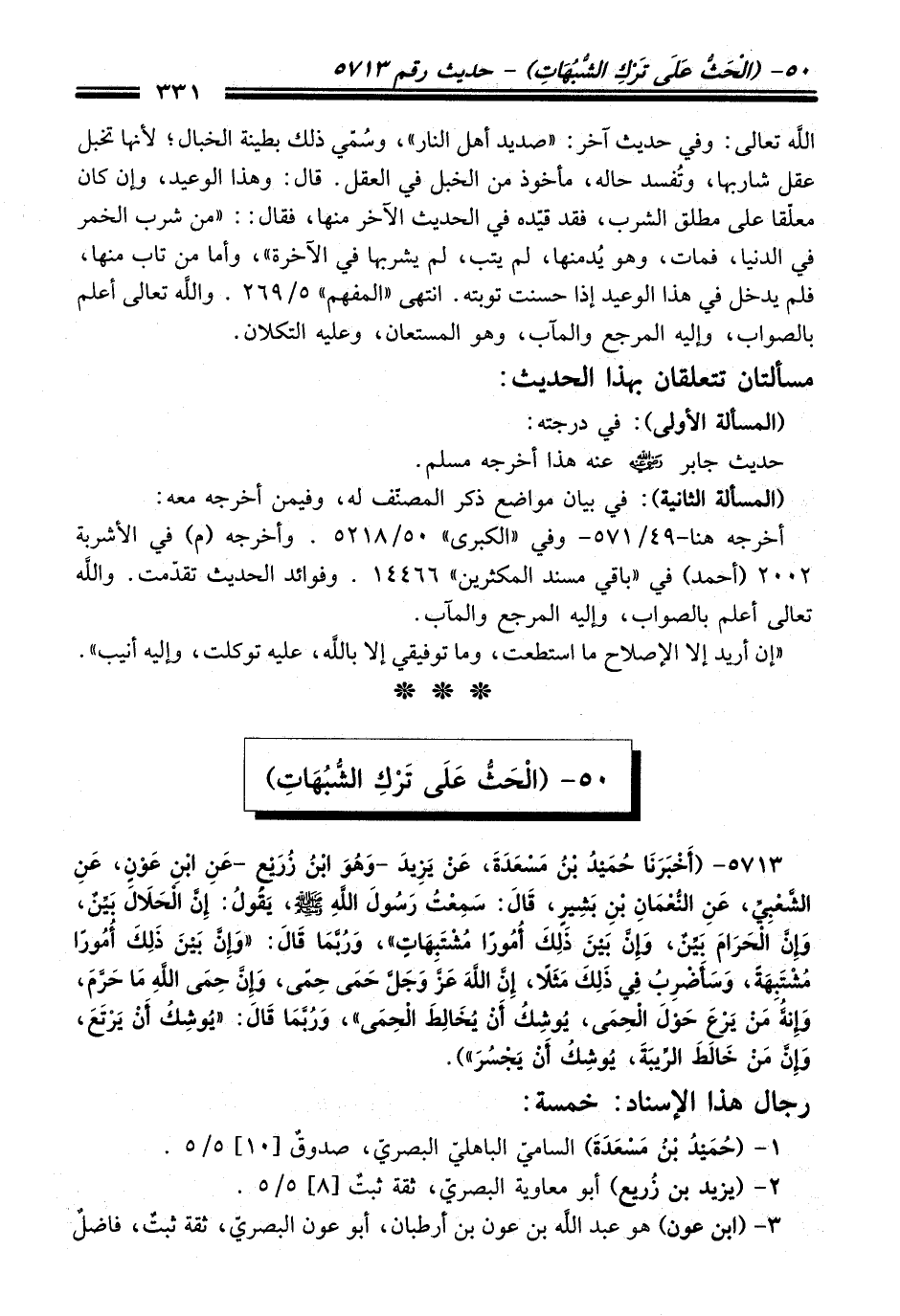 مسألتان تتعلّقان بهذا الْحَدِيث: