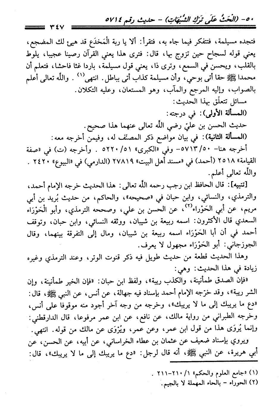 (¬1) "جامع العلوم والحكم" 1/ 210 - 211.