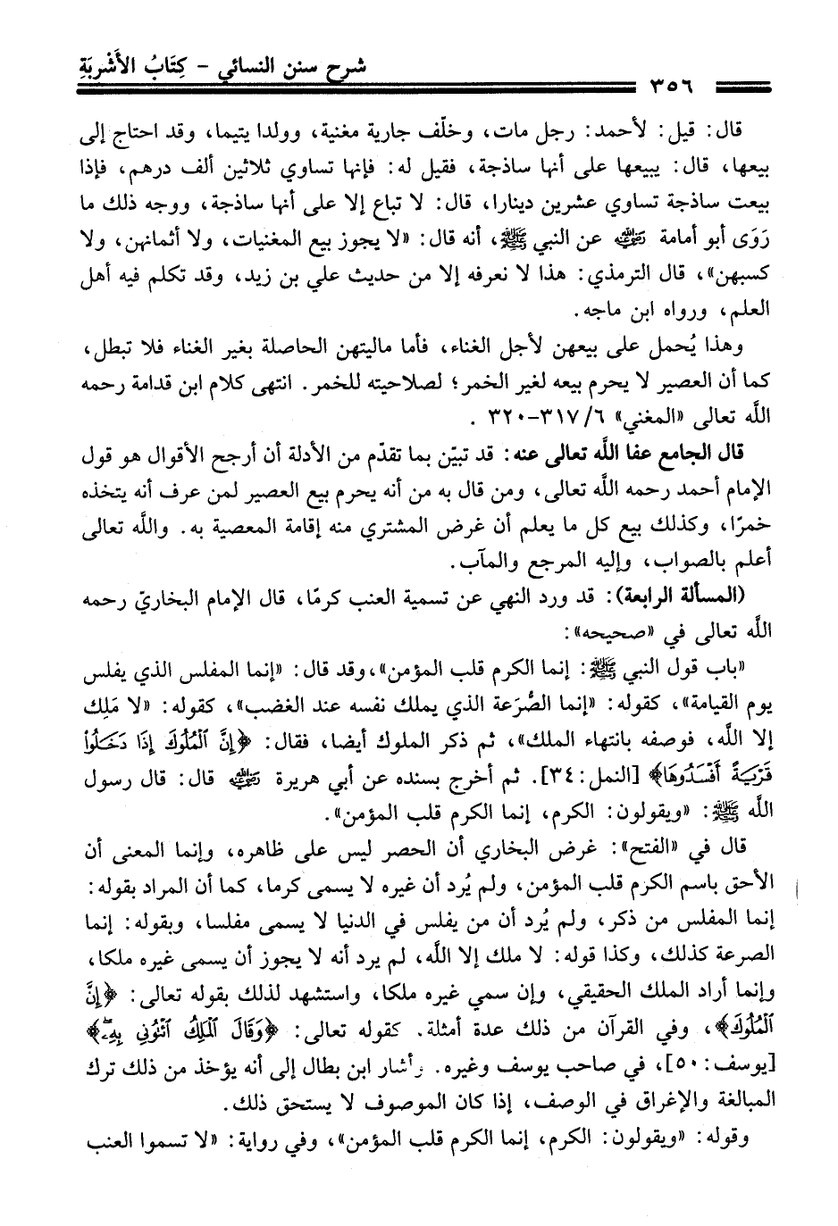 (المسألة الرابعة): قد ورد النهي عن تسمية العنب كرمًا، قَالَ الإمام البخاريّ رحمه الله تعالى فِي "صحيحه":