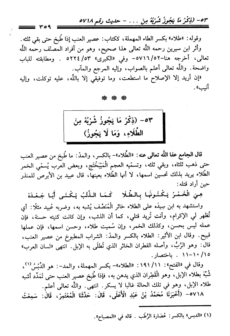 53 - (ذِكْرُ مَا يَجُوزُ شُرْبُهُ مِنَ الطِّلَاءِ، وَمَا لَا يَجُوزُ)