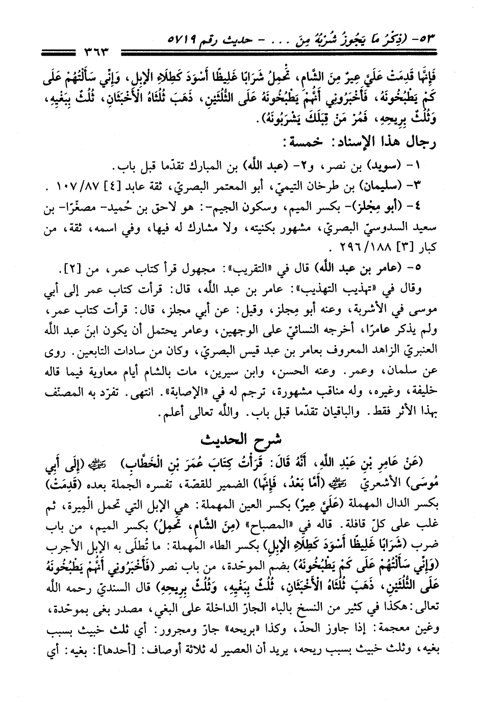 5 - (عامر بن عبد الله) قَالَ لي "التقريب": مجهول قرأ كتاب عمر، منْ [2].