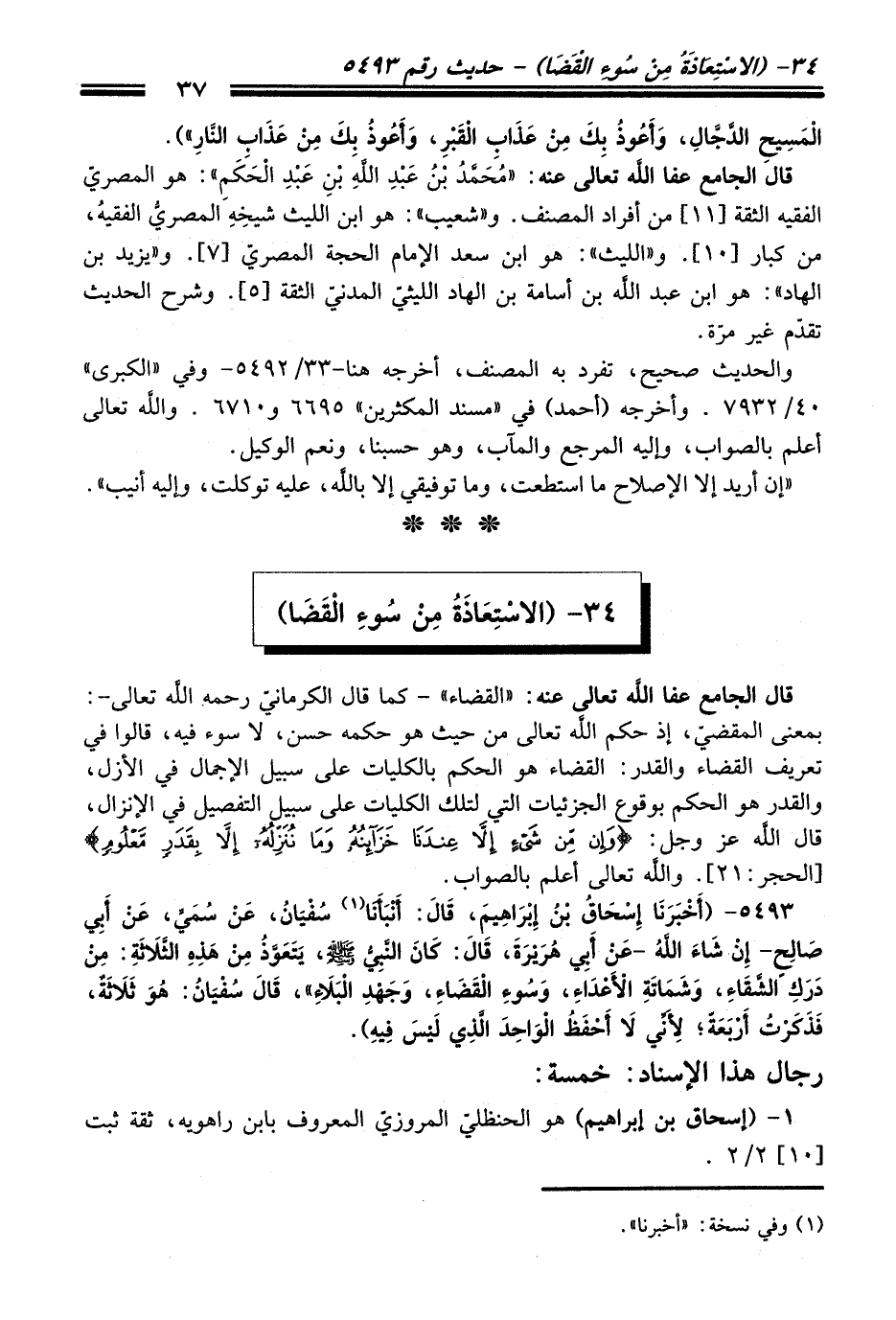 34 - (الاِسْتِعَاذَةِ مِنْ سُوءِ الْقَضَاءِ)