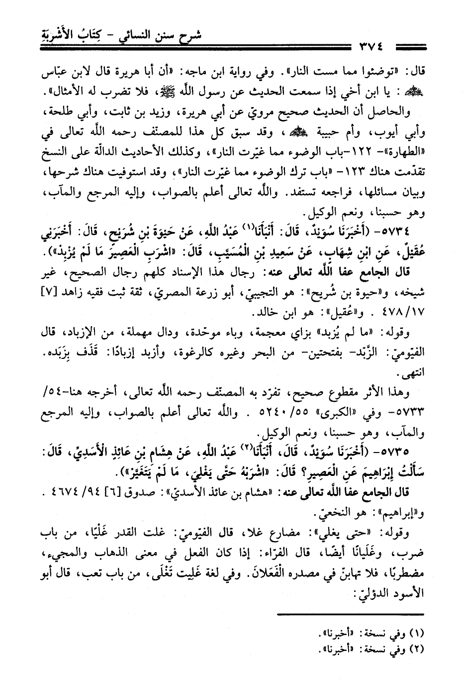 5734 - (أَخْبَرَنَا سُوَيْدٌ، قَالَ: أَنْبَأَنَا (¬1) عَبْدُ اللَّهِ، عَنْ حَيْوَةَ بْنِ شُرَيْحٍ، قَالَ: أَخْبَرَنِي عُقَيْلٌ، عَنِ ابْنِ شِهَابٍ، عَنْ سَعِيدِ بْنِ الْمُسَيَّبِ، قَالَ: "اشْرَبِ الْعَصِيرَ مَا لَمْ يُزْبِدْ").