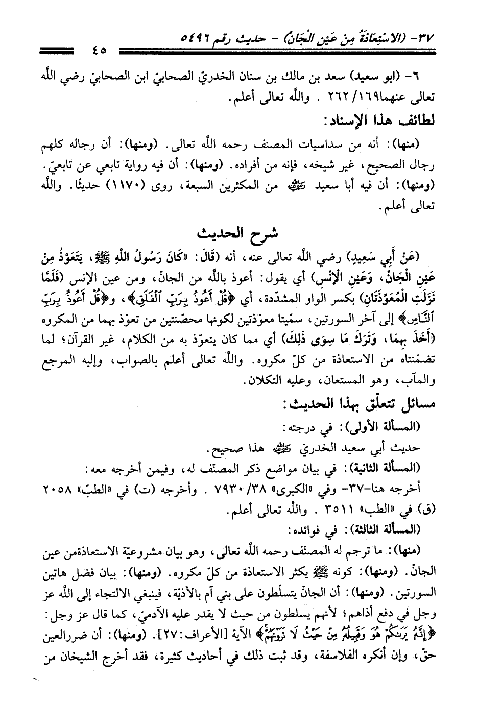 6 - (أبو سعيد) سعد بن مالك بن سنان الخدريّ الصحابيّ ابن الصحابيّ رضي الله تعالى عنهما 169/ 262. والله تعالى أعلم.