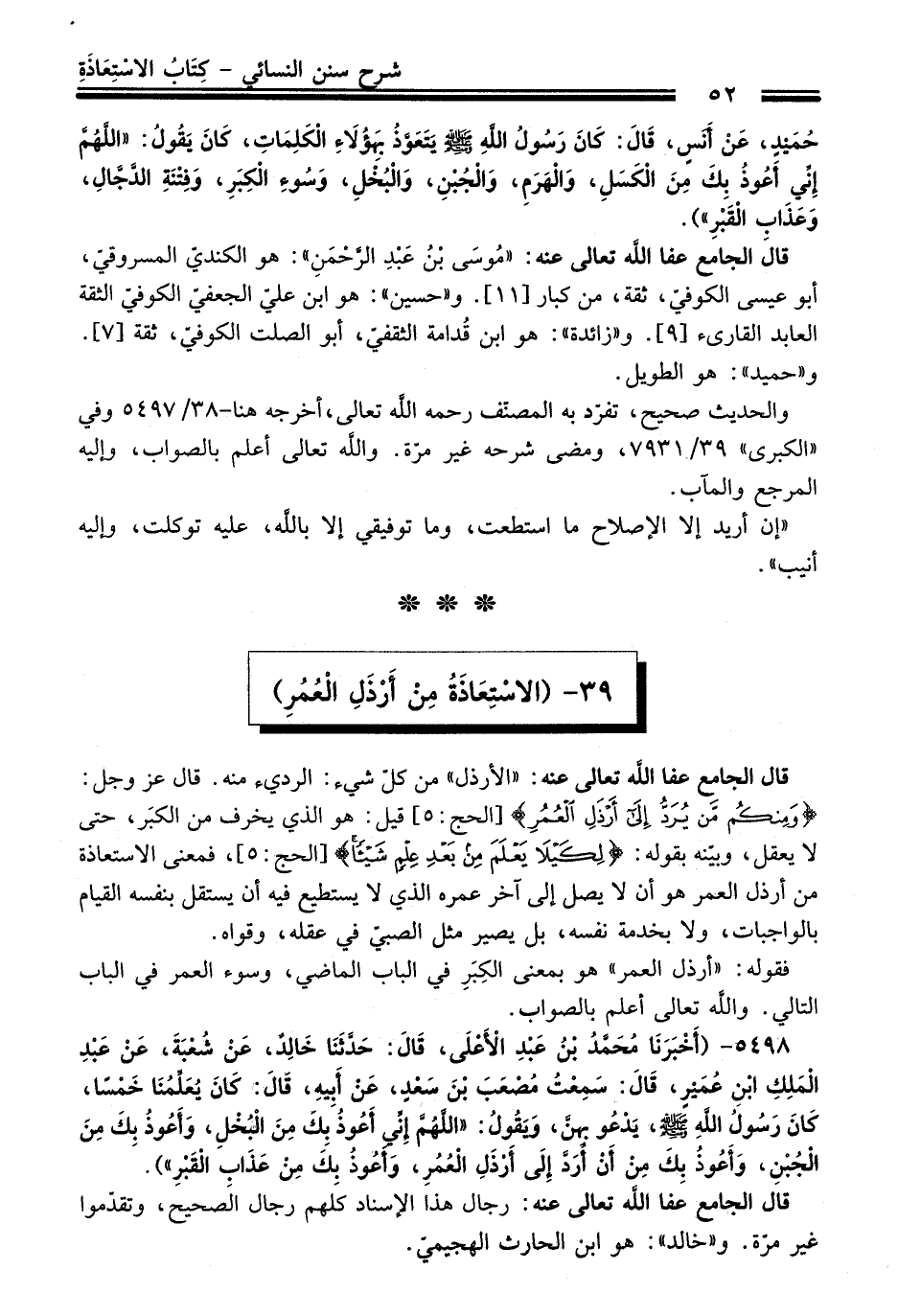 39 - (الاِسْتِعَاذَةِ مِنْ أَرْذَلِ الْعُمُرِ)