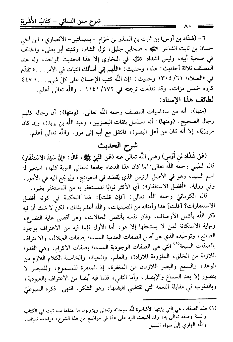 (عَنْ شدَّادِ بْنِ أَوْسٍ) رضي الله تعالى عنه (عَنِ النَّبِيِّ -صلى الله عليه وسلم-، قَالَ: "إِن سَيِّدَ الِاسْتِغْفَارِ) قَالَ الطيبي رحمه الله تعالى: لما كَانَ هَذَا الدعاء جامعا لمعاني التوبة كلها، استعير له اسم السيد، وهو فِي الأصل الرئيس الذي يُقصَد فِي الحوائج، ويُرجَع إليه فِي الأمور. وفي رواية: "أفضل الاستغفار": أي الأكثر ثوابًا للمستغفر به منْ المستغفر بغيره.