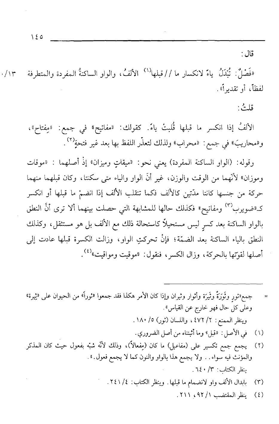 «فصل: تبدل ياء لانكسار ما// ما قبلها الألف، والواو الساكنة المفردة والمتطرفة لفظاً، أو تقديراً».