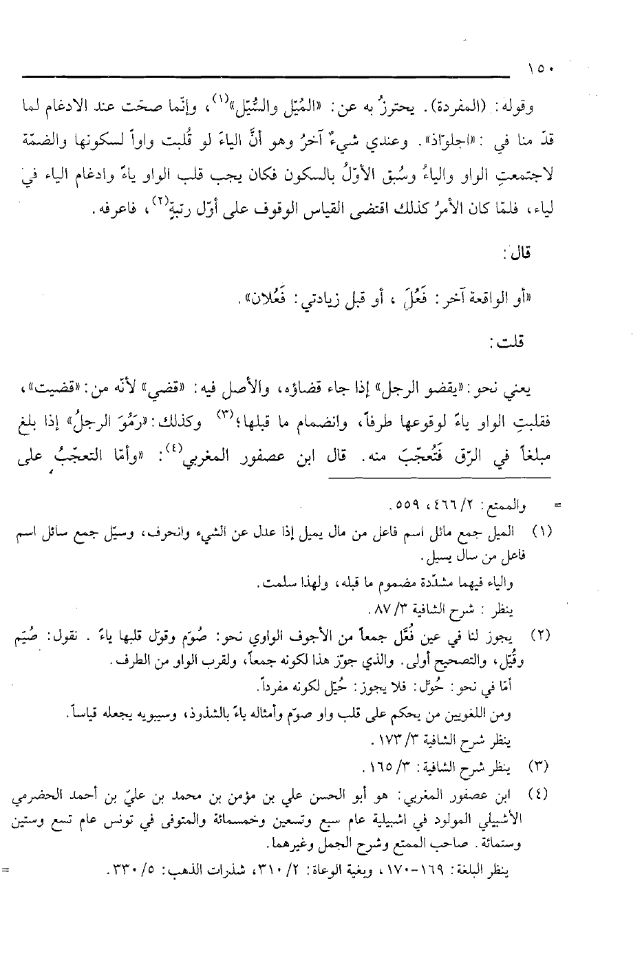 يعني نحو: "يقضو الرجل" إذا جاء قضاؤه، والأصل فيه: "قضي" لأنه من: "قضيت" فقلبت الواو ياء لوقوعها طرفا، وانضمام ما قبلها؛ وكذلك: "رمو الرجل" إذا بلغ مبلغا في الرق فتعجب منه. قال ابن عصفور المغربي: " وأما التعجب على