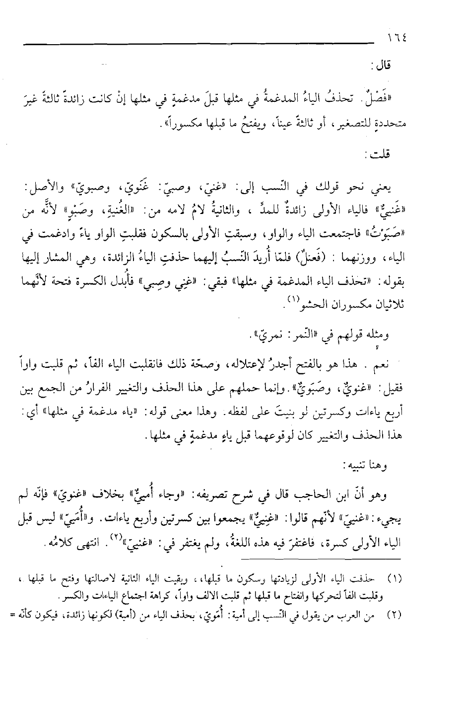نعم. هذا هو بالفتح أجدر لإعتلاله، وصحة ذلك فانقلبت الياء ألفا، ثم قلبت واواً فقيل: "غنوي، وصبوي" وإنما حملعم على هذا الحذف والتغيير الفرار من الجمع بين أربع ياءات وكسرتين لو بنيت على لفظه. وهذا معنى قوله: "ياء مدغمة في مثلها" أي: هذا الحذف والتغيير كان لوقوعهما قبل ياء مدغمة في مثلها.
