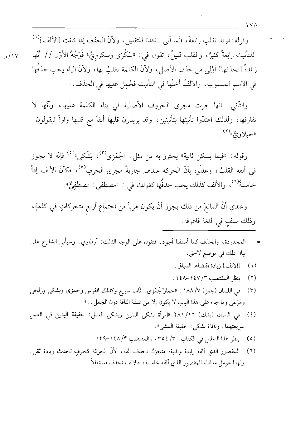 وقوله: "وقد تقلب رابعة، إنما أتى بـ "قد" للتقليل، ولأن الحذف إذا كانت [الألف] للتأنيث رابعة كثير، والقلب قليل، تقول في: "سكرى وسكروي" فوجه الأول// أنها زائدة [فحذفها] أولى من حذف الأصل، ولأن الكلمة تغلب بها، ولأن الياء يجب حذفها في الاسم المنسوب والألف أختها في التأنيث فحمل عليها في الحذف.