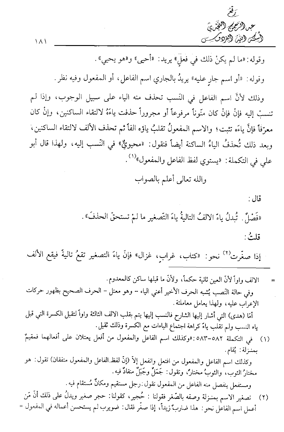 «فصل. تبدل ياء الألف التالية ياء التصغير ما لم تستحق الحذف».