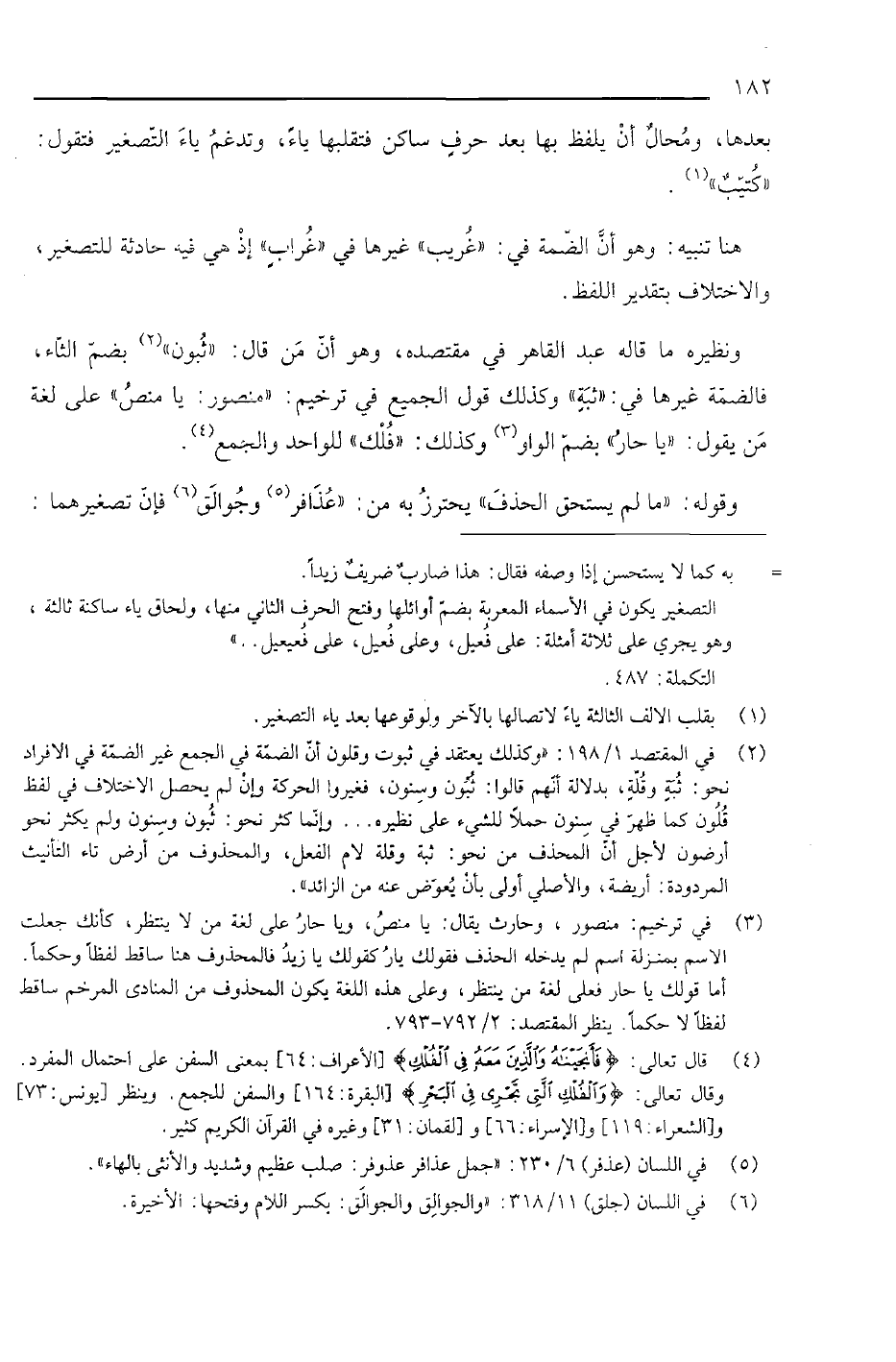 ونظيره ما قاله عبد القاهر في مقتصده، وهو أن من قال: "ثبون" بضم الثاء، فالضمة غيرها في: "ثبة" وكذلك قول الجميع في ترخيم: "منصور: با منص" على لغة من يقول: "يا حار" بضم الواو وكذلك "فلك" للواحد والجمع.