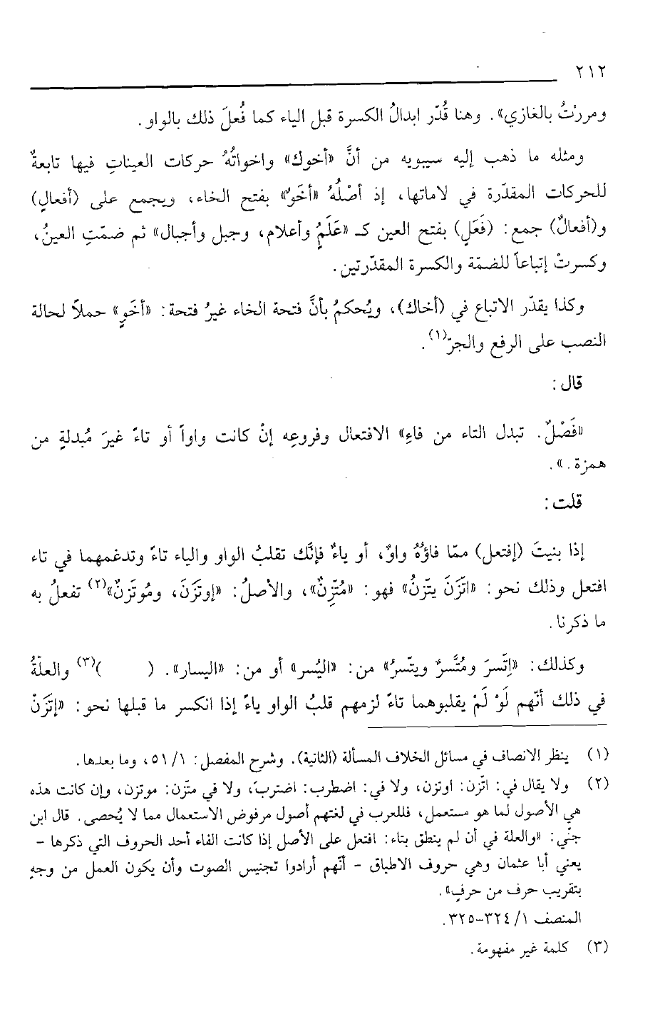 "فضلٌ. تبدل التاء من فاء" الافتعال وفروعه إن كانت واواً أو تاءً غير مبدلةٍ من همزة.".