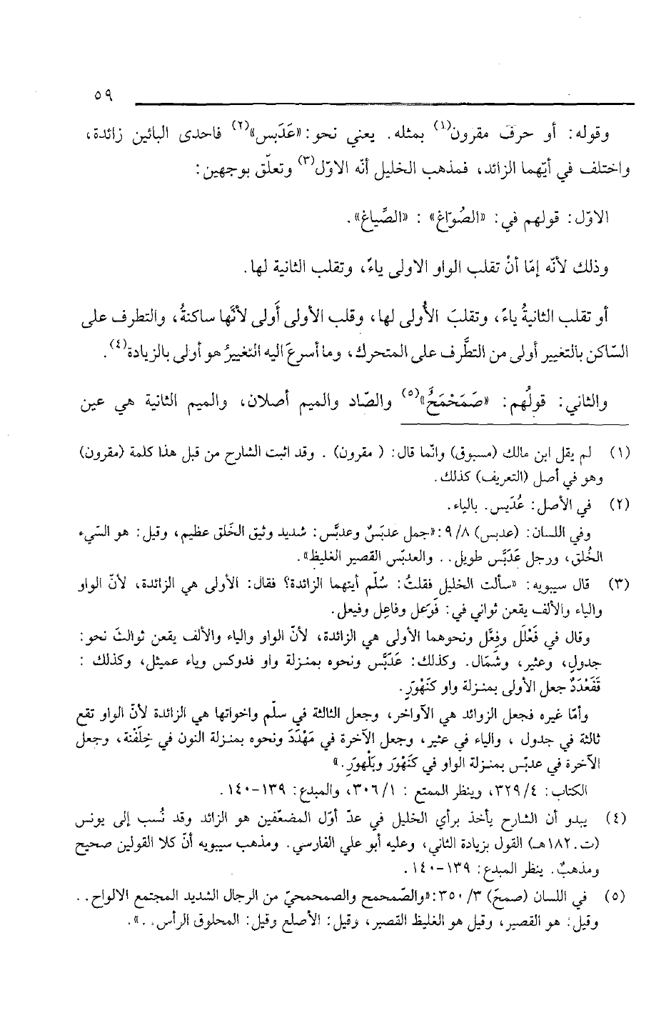 والثاني: قولهم: "صمحمح"والصاد والميم أصلان, والميم الثانية هي عين