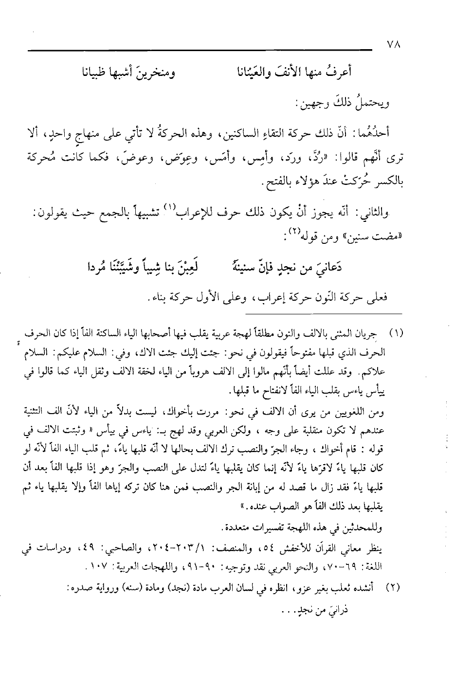 والثاني: أنه يجوز أن يكون ذلك حرف للإعراب تشبيهاً بالجمع حيث يقولون: " مضت سنين" ومن قوله: