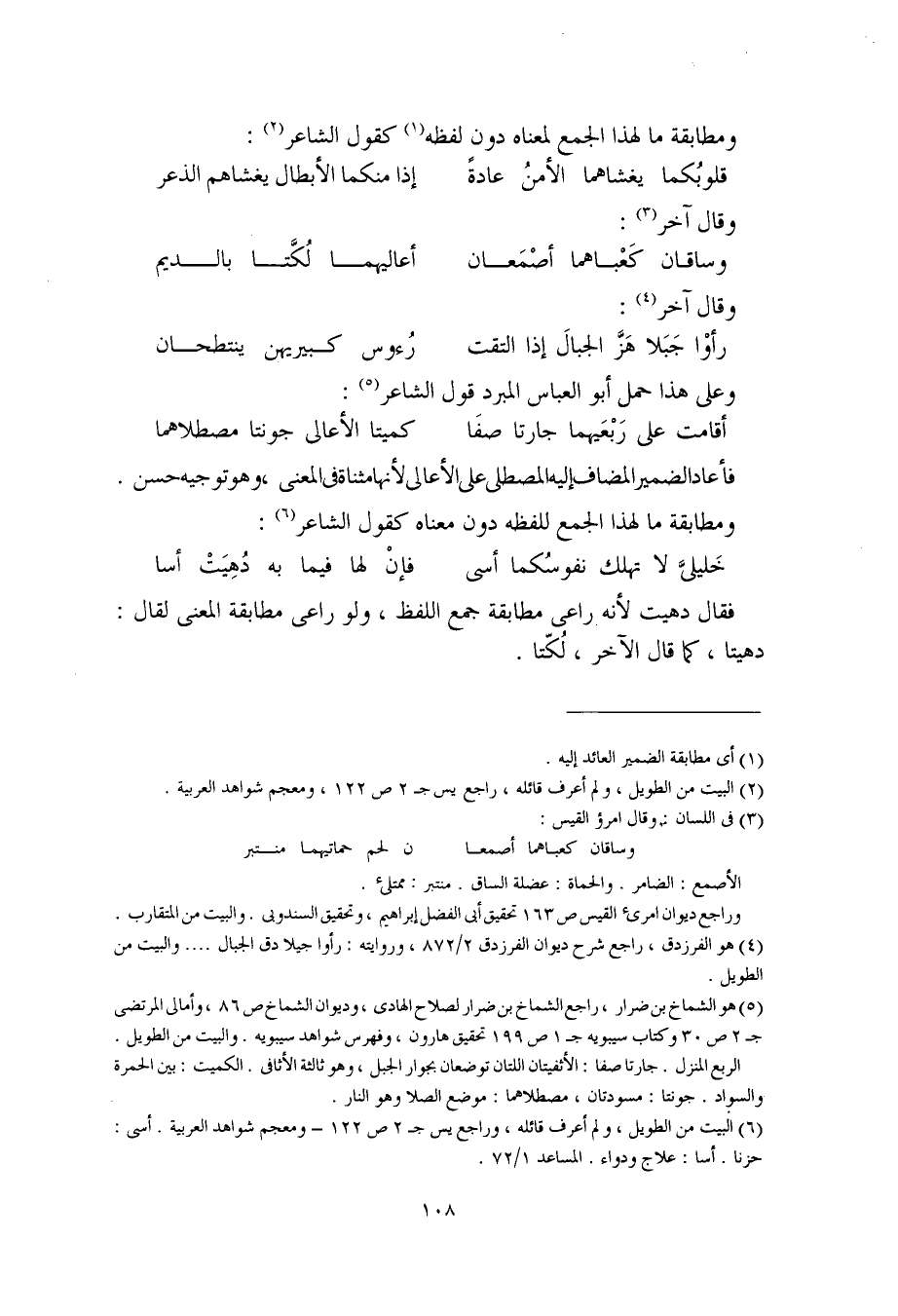ومطابقة ما لهذا الجمع لمعناه دون لفظه كقول الشاعر: