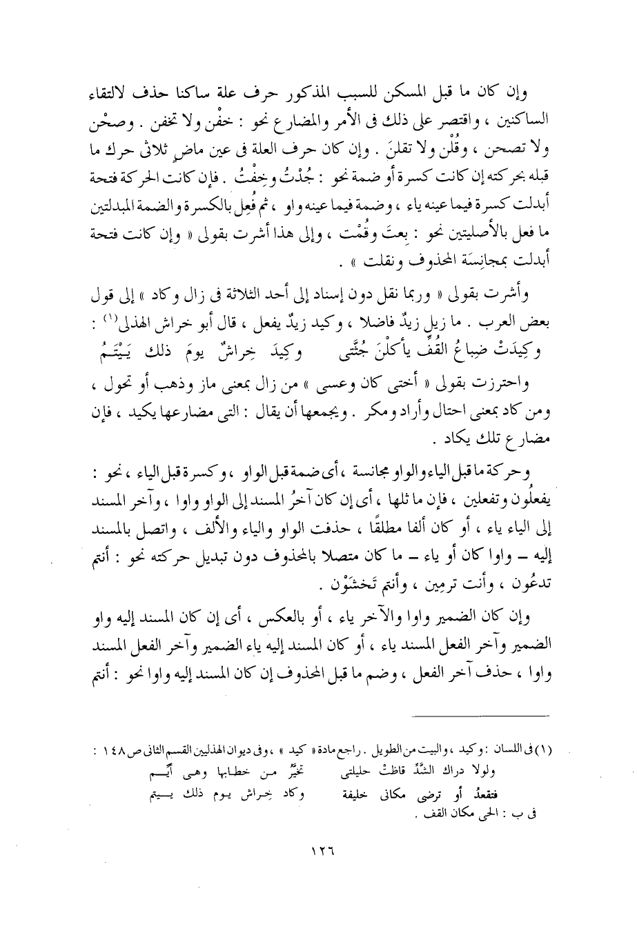 وأشرت بقولي "وربما نقل دون إسناد إلى أحد الثلاثة في زال وكاد" إلى قول بعض العرب. ما زيل زيدٌ فاضلا، وكيد زيدٌ يفعل، قال أبو خراش الهذلي: