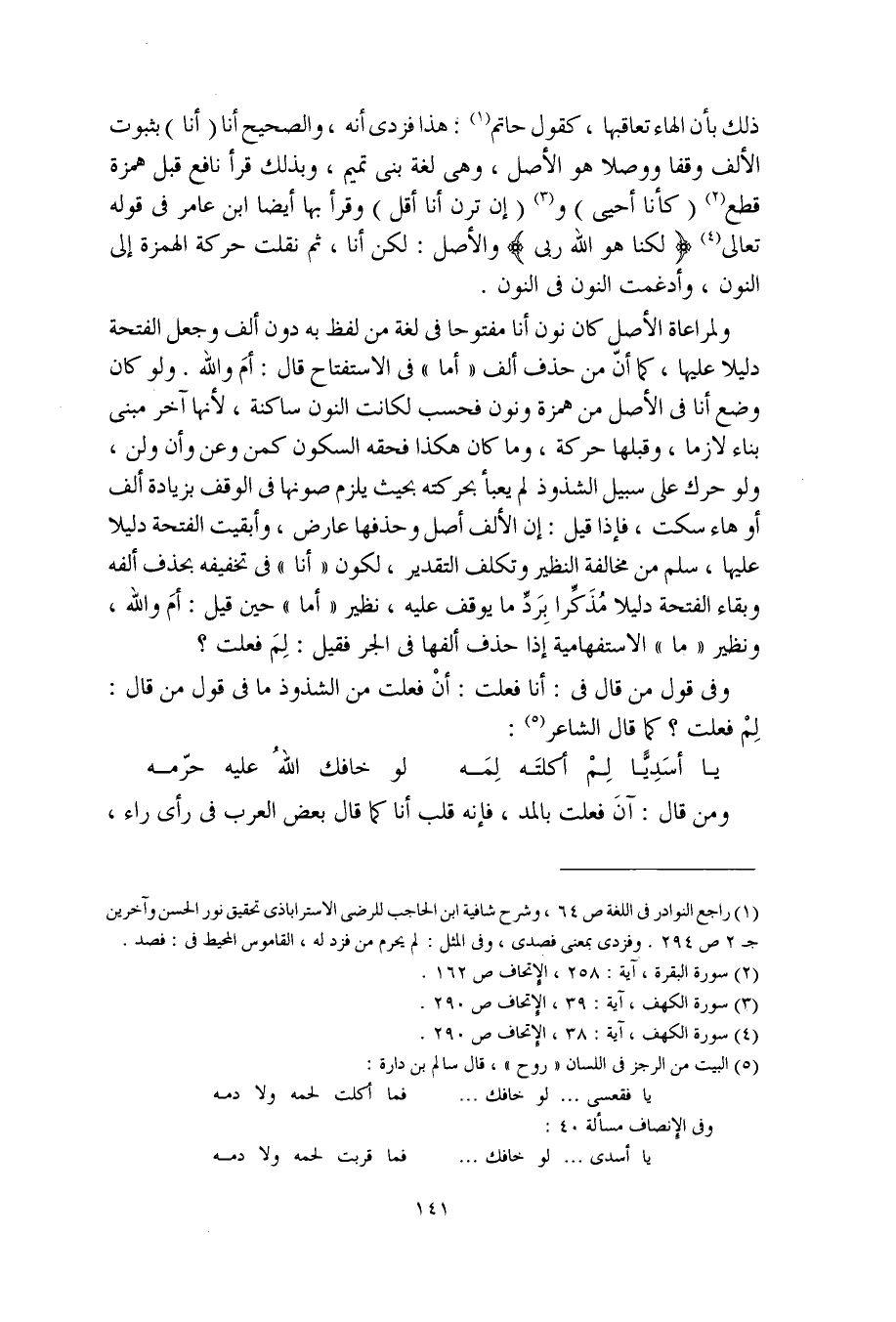 ذلك بأن الهاء تعاقبها، كقول حاتم، هذا فزدى أنه، والصحيح أنا (أنا) بثبوت الألف وقفا ووصلا هو الأصل، وهي لغة بني تميم، وبذلك قرأ نافع قبل همزة قطع (كأنا أحيي) و (إن ترن أنا أقل) وقرأ بها أيضا ابن عامر في قوله تعالى (لكنا هو الله ربي) والأصل: لكن أنا، ثم نقلت حركة الهمزة إلى النون، وأدغمت النون في النون.