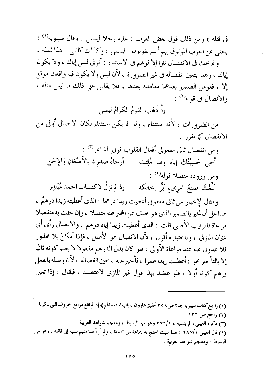 من الضرورات، لأنه استثناء، ولو لم يكن استثناء لكان الاتصال أولى من الانفصال كما تقرر.