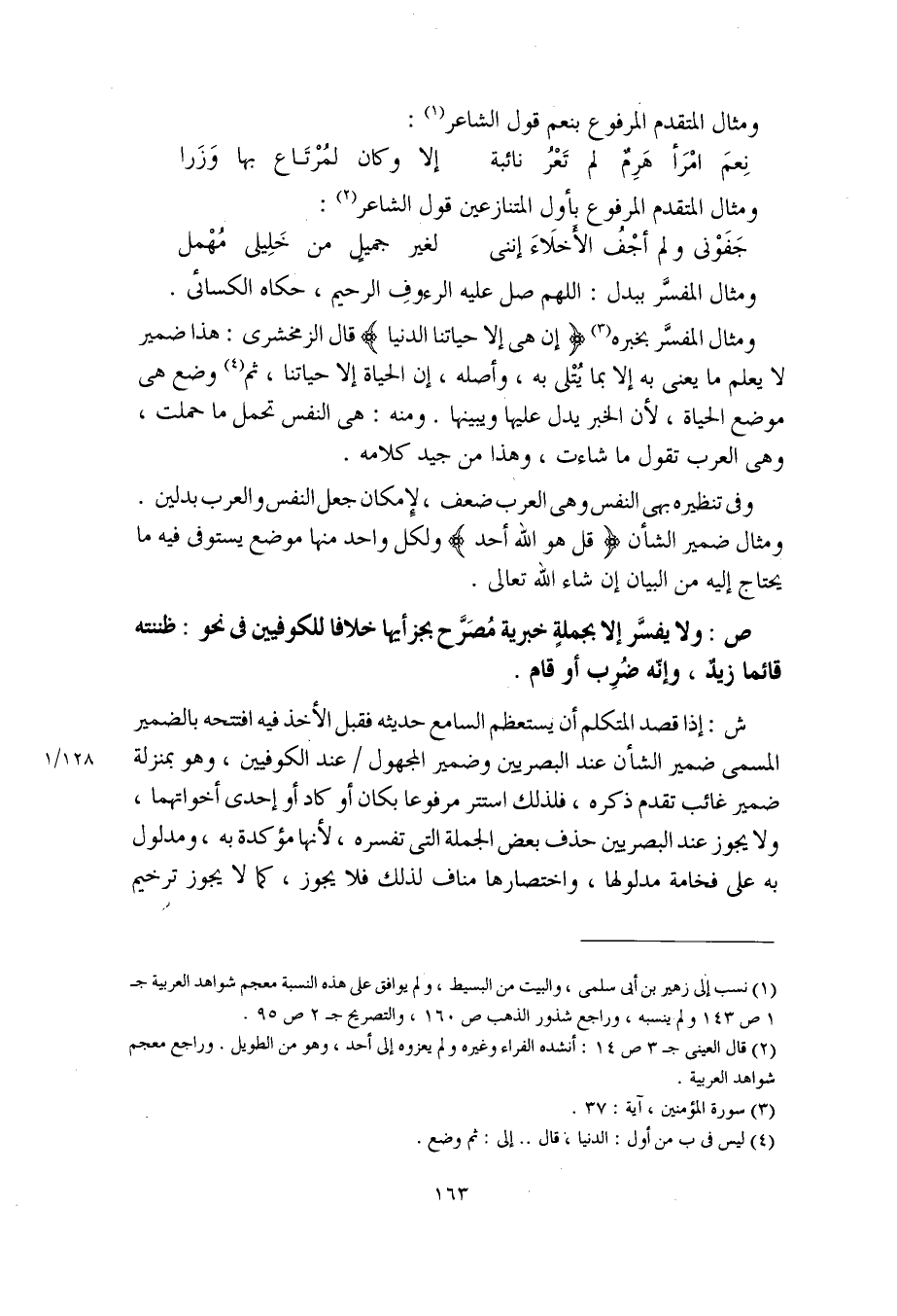 ومثال ضمير الشأن (قل هو الله أحد) ولكل واحد منها موضع يستوفى فيه ما يحتاج إليه من البيان إن شاء الله تعالى.