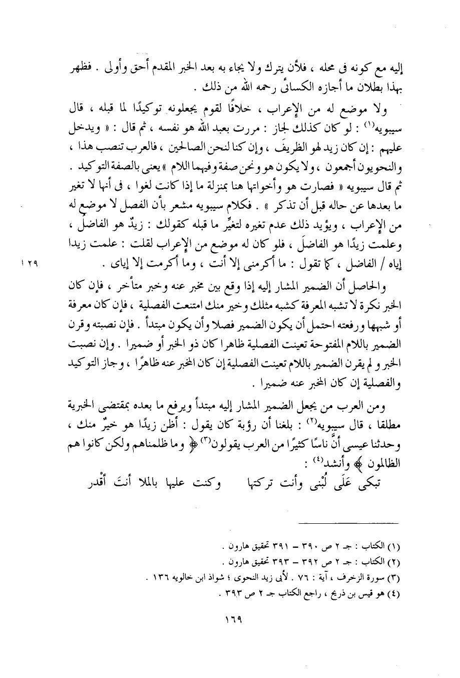 ومن العرب من يجعل الضمير المشار إليه مبتدأ ويرفع ما بعده بمقتضى الخبرية مطلقا، قال سيبويه: بلغنا أن رؤبة كان يقول: أظن زيدًا هو خيرٌ منك، وحدثنا عيسى أنَّ ناسًا كثيرًا من العرب يقولون (وما ظلمناهم ولكن كانوا هم الظالمون) وأنشد:
