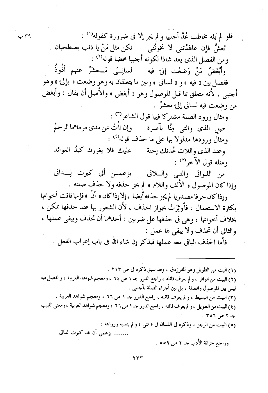 ومن الفصل الذي يعد شاذا لكونه أجنبيا محضا قوله: