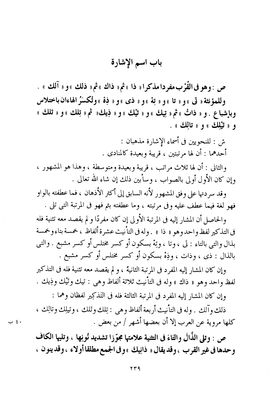 ش: للنحويين في أسماء الإشارة مذهبان: