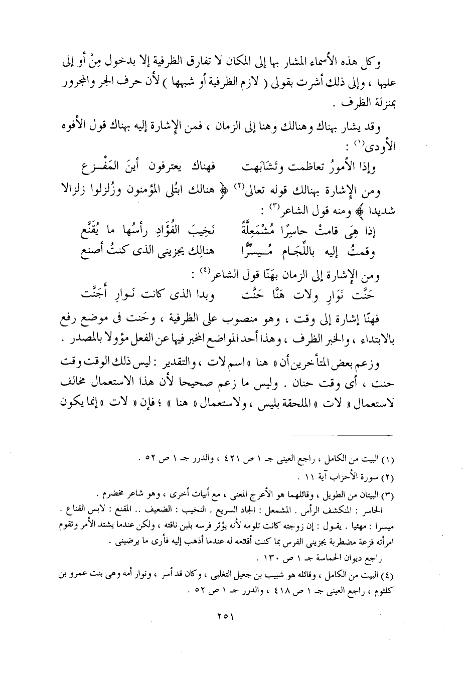 وقد يشار بهناك وهنالك وهنا إلى الزمان، فمن الإشارة إليه بهناك قول الأفوه الأودى: