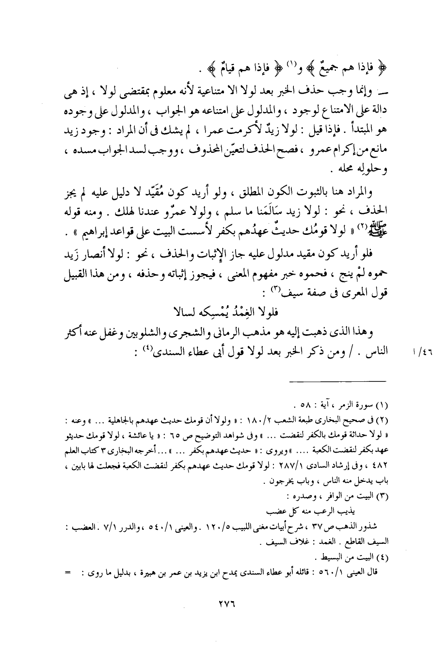 وهذا الذي ذهبت إليه هو مذهب الرماني والشجري والشلوبين وغفل عنه أكثر الناس. ومن ذكر الخبر بعد لولا قول أبي عطاء السندي: