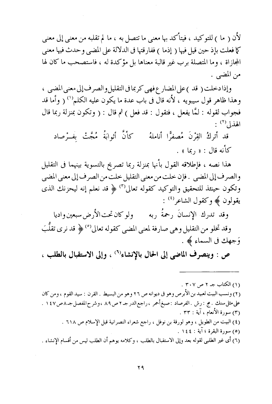 وقد تخلو من التقليل وهي صارفة لمعنى المضي كقوله تعالى (قد نرى تقلُّب وجهك في السماء).