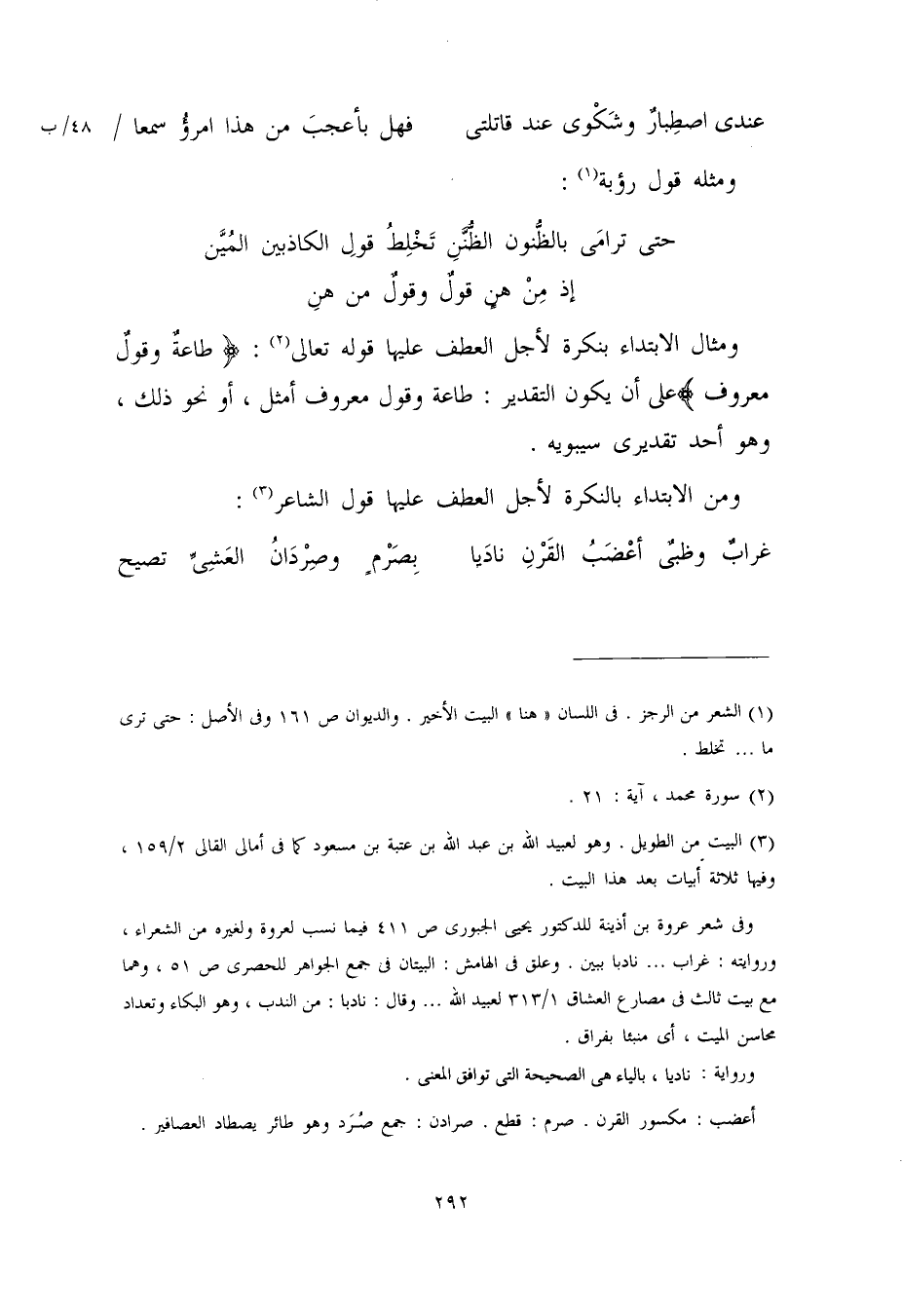 غرابٌ وظبيٌ أعْضَبُ القَرْنِ نادَيا ... بِصَرْمٍ وصْرْدانُ العَشِيِّ تصيح