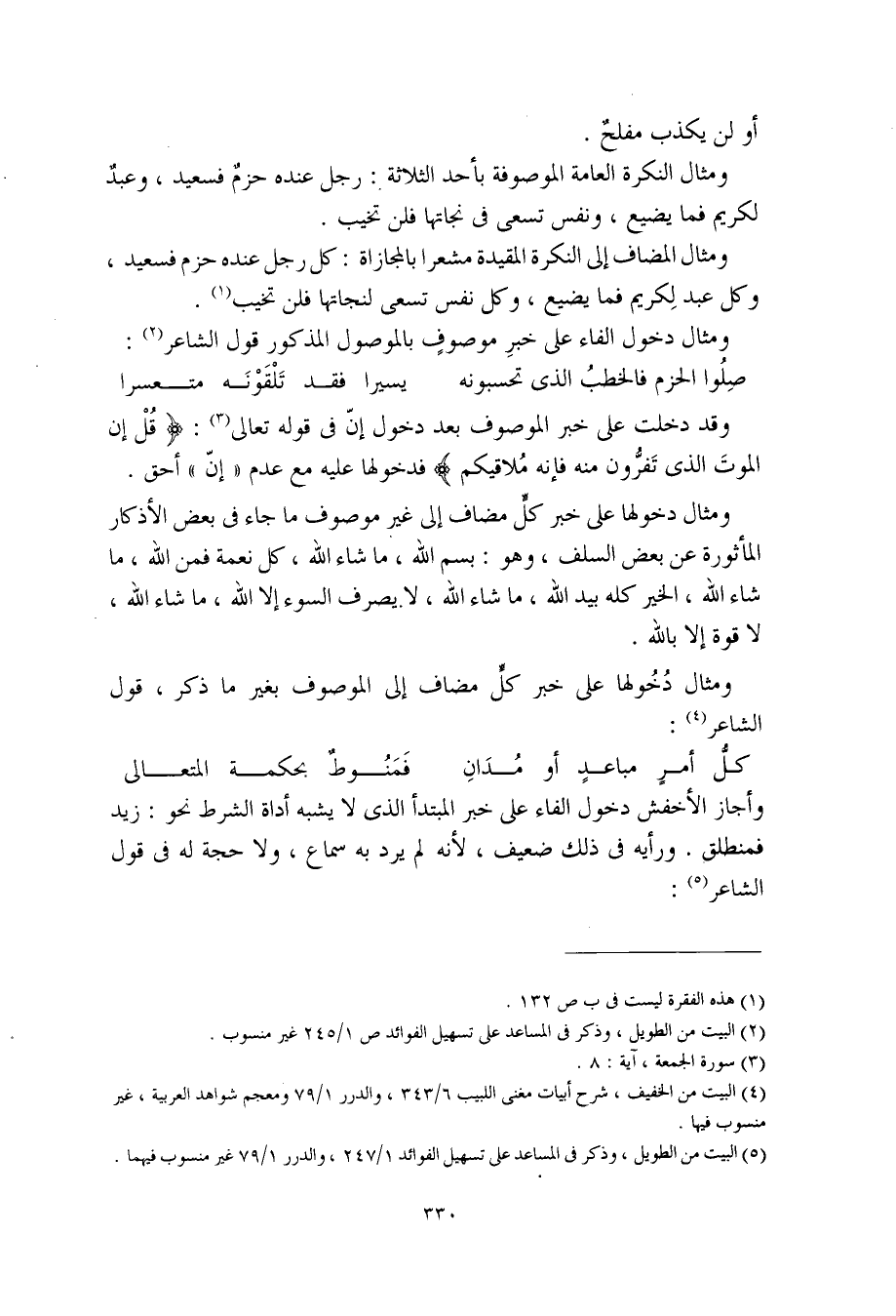ومثال دخول الفاء على خبر موصوفٍ بالموصول المذكور قول الشاعر: