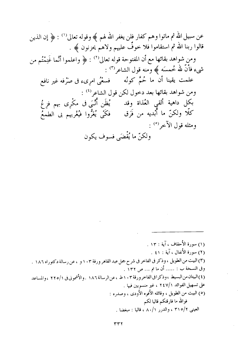 ومن شواهد بقائها مع أن المفتوحة قوله تعالى: (واعلموا أنّما غَنِمْتُم من شيء فأنّ لله خُمسَه) ومنه قول الشاعر: