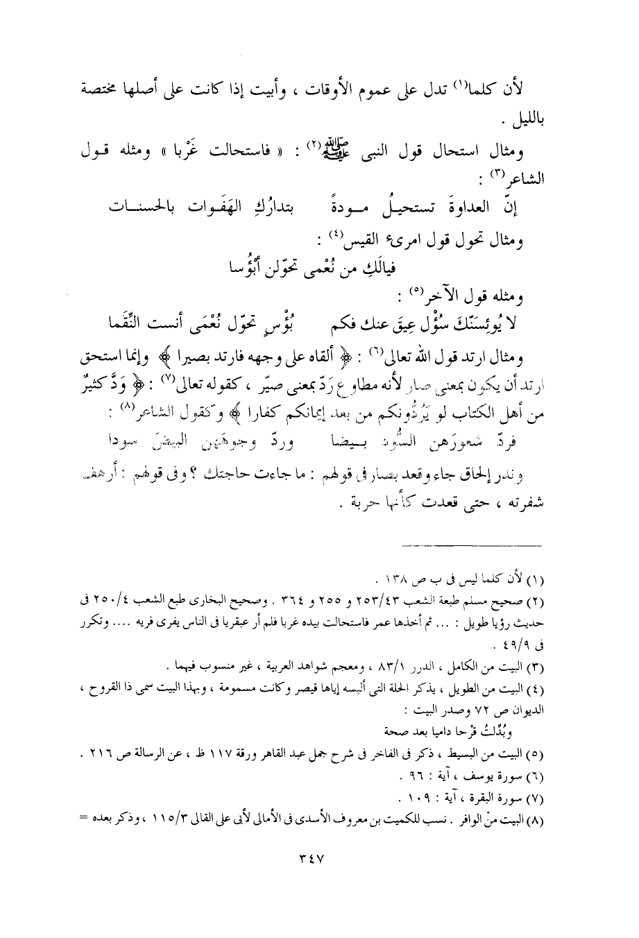 ومثال استحال قول النبي صلى الله عليه وسلم: "فاستحالت غَرْبا" ومثله قول الشاعر:
