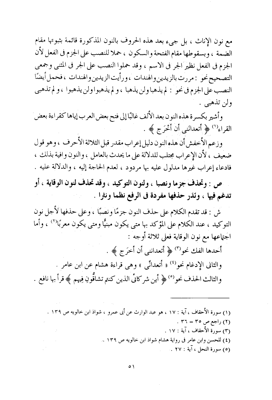 وأشير بكسرة هذه النون بعد الألف غالبًا إلى فتح بعض العرب إياها كقراءة بعض القراء (أتعدانني أن أخرج).