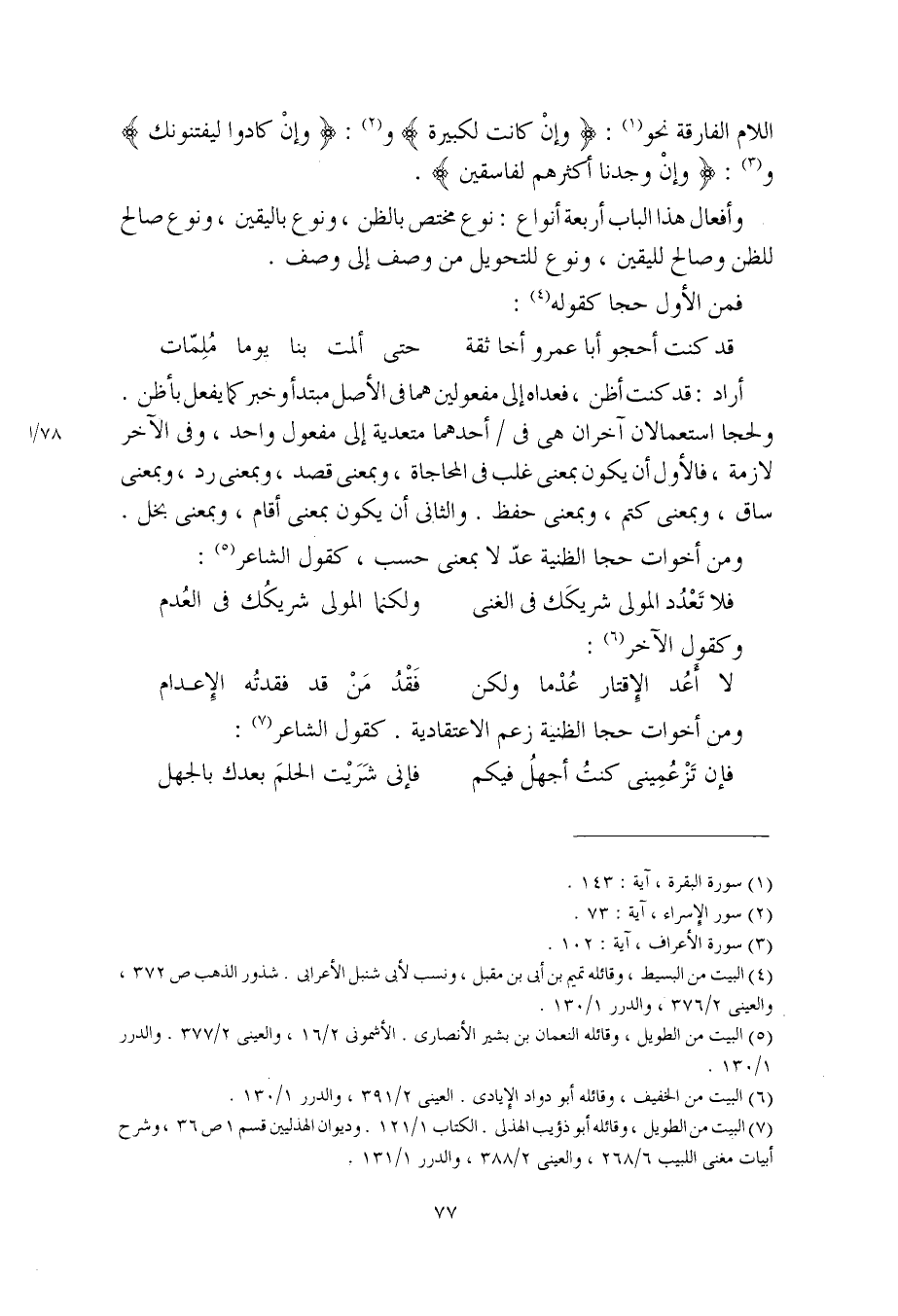 أراد: قد كنت أظن، فعداه إلى مفعولين هما في الأصل مبتدأ وخبر كما يفعل بأظن. ولحجا استعمالان آخران هي في أحدهما متعدية إلى مفعول واحد، وفي الآخر لازمة، فالأول أن يكون بمعنى غلب في المحاجاة، وبمعنى قصد، وبمعنى رد، وبمعنى ساق، وبمعنى كتم، وبمعنى حفظ. والثاني أن يكون بمعنى أقام، وبمعنى بخل.