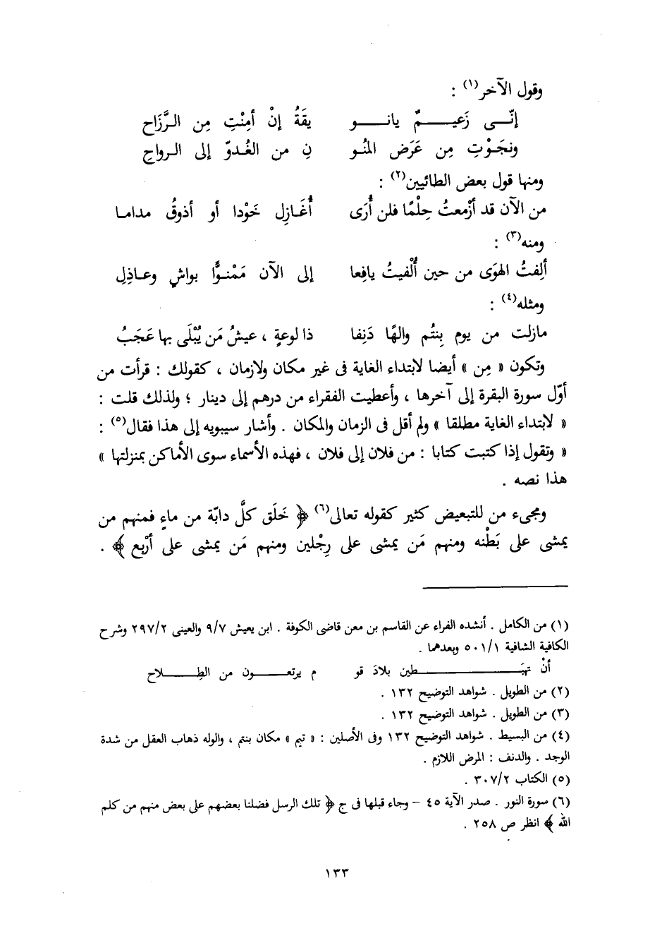 ومجيء من التبعيض كثير كقوله تعالى (خلق كلَّ دابّة من ماءٍ فمنهم من يمشي على بطنه ومنهم مَن يمشي على رجلين ومنهم من يمشي على أربع).