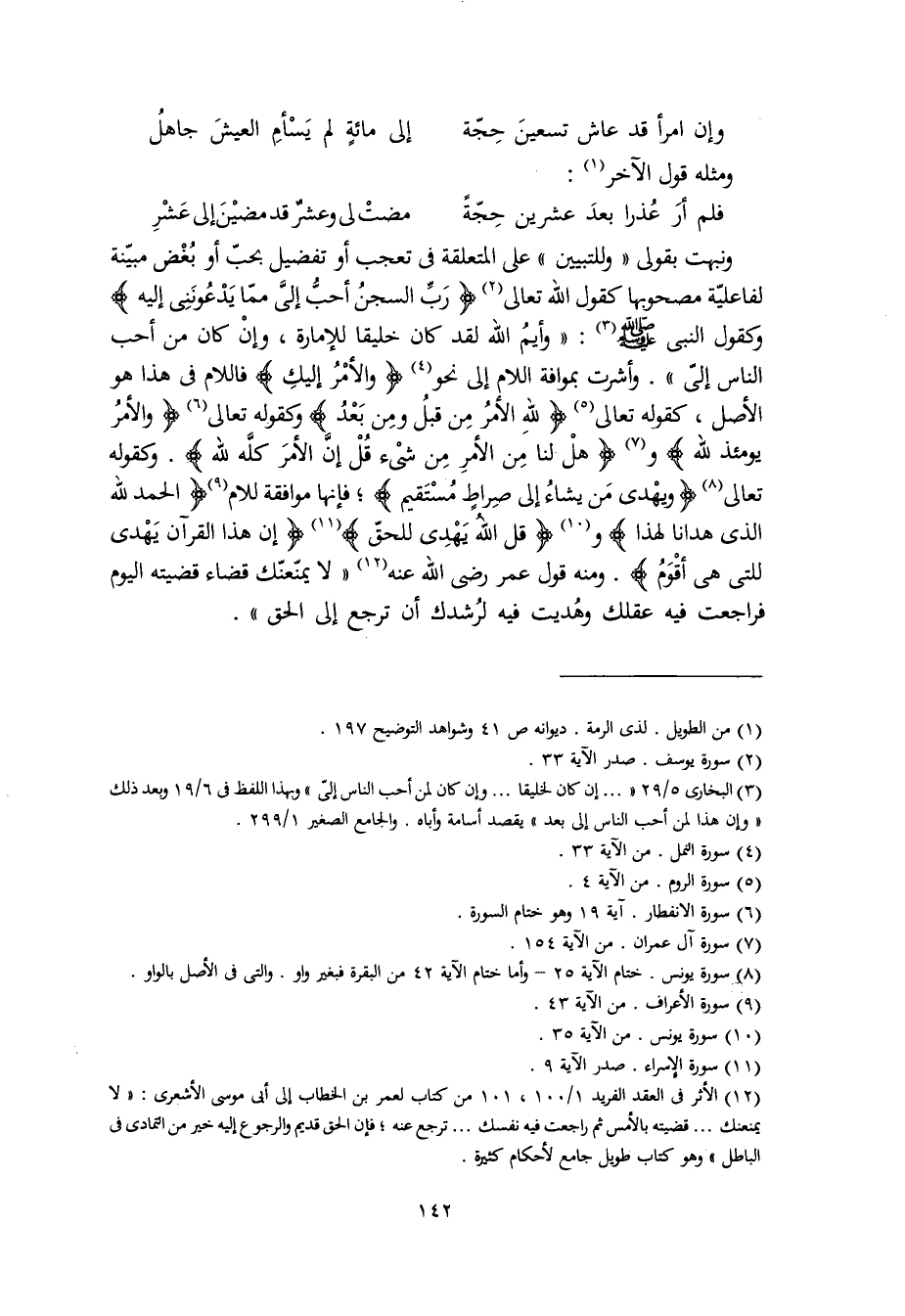 ونبهت بقولي "وللتبيين" على المتعلقة في تعجب أو تفضيل بحبّ أو بُغْض مبيّنة لفاعليّة مصحوبها كقول الله تعالى (رَبِّ السجنُ أحبُّ إليَّ ممّا يدعونني إليه) وكقول النبي صلى الله عليه وسلم: "وأيمُ الله لقد كان خليقا للإمارة، وإنْ كان من أحب الناس إليّ". وأشرت بموافة اللام إلى نحو (والأمرُ إليك) فاللام في هذا هو الأصل، كقوله تعالى (للهِ الأمرُ من قبلُ ومن بعدُ) وكقوله تعالى (والأمرُ يومئذ لله) و (هلْ لنا من الأمر من شيء قلْ إنَّ الأمرَ كلَّه لله). وكقوله تعالى (ويهْدي من يشاء إلى صراطٍ مُسْتقيم)؛ فإنها موافقة للام (الحمد لله الذي هدانا لهذا) و (قل اللهُ يهدي للحقّ) (إن هذا القرآن يهدي للتي هي أقْوَمُ). ومنه قول عمر رضي الله عنه "لا يمنعنّك قضاء قضيته اليوم فراجعت فيه عقلك وهُديت فيه لرُشدك أن ترجع إلى الحق".