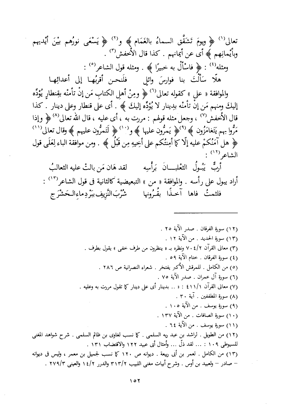 تعالى (ويومَ تَشَقَّق السماءُ بالغمام) و (يسعى نورهم بين أيديهم وبأيمانهم) أي عن أيمانهم. كذا قال الأخفش.