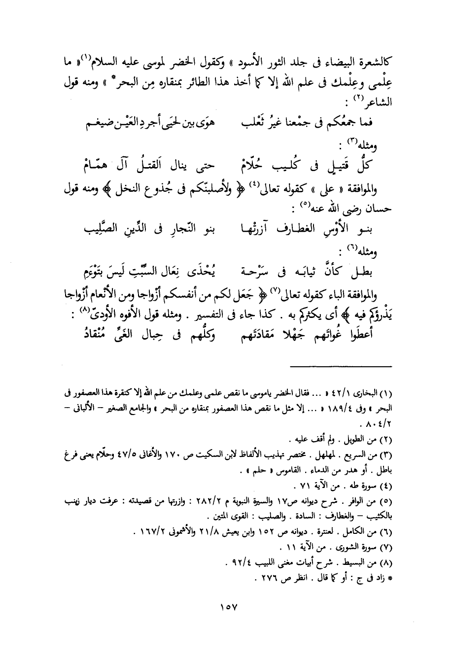 كالشعرة البيضاء في جلد الثور الأسود" وكقول الخضر لموسى عليه السلام "ما علمي وعلمك في علم الله إلا كما أخذ هذا الطائر بمنقارة من البحر" ومنه قول الشاعر:
