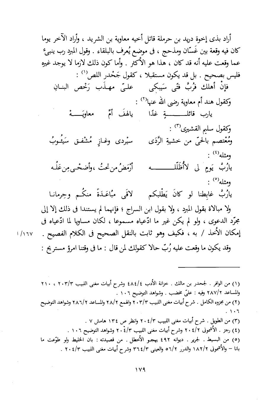 ولا مبالاة بقول المبرد، ولا بقول ابن السراج، فإنهما لم يستندا في ذلك إلا إلى مجرّد الدعوى، ولو لم يكن غير ما ادّعياه مسموعا، لكان مساويا لما ادّعياه في إمكان الأخذ به، فكيف وهو ثابت بالنقل الصحيح في الكلام الفصيح.